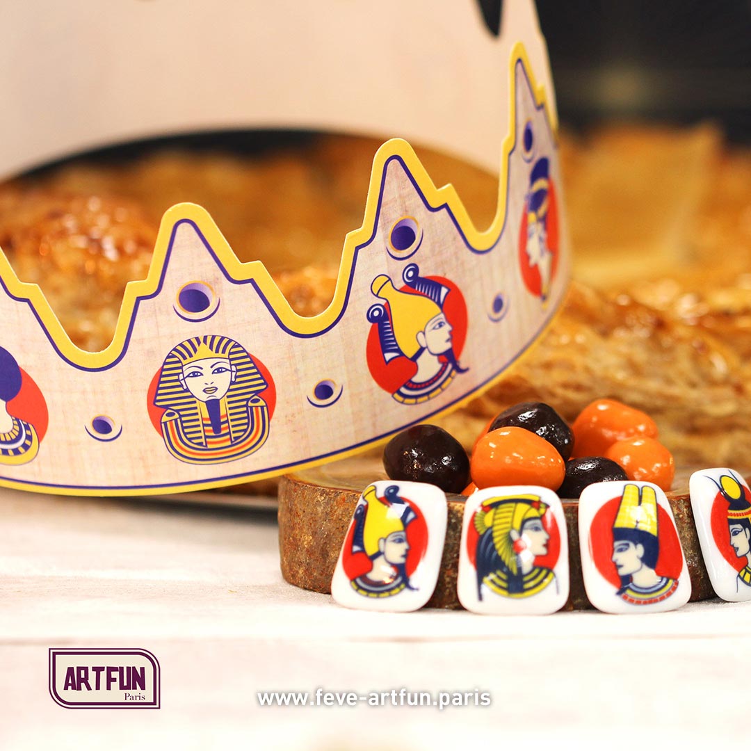 Le fabuleux récit des dynasties égyptiennes revisité avecmodernité sur la couronne ArtFun se dessine sur vos incomparables galettes desrois. Divinement présentées dans la vitrine de votre patisserie, elles nelaissent personne indifférent !