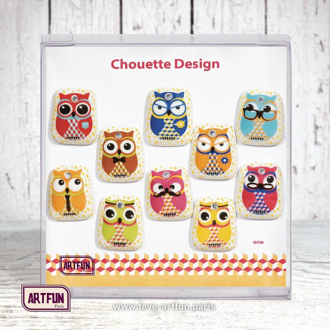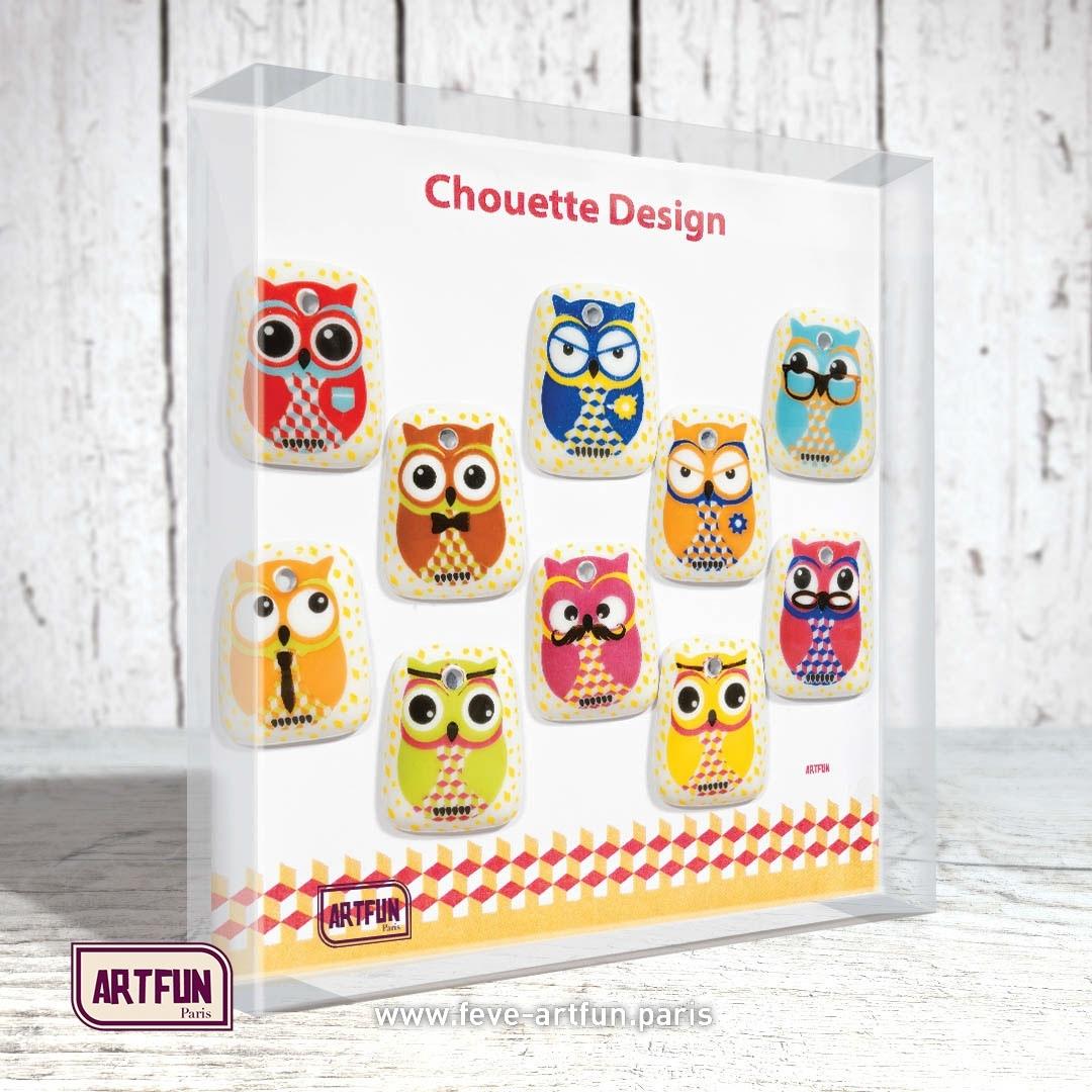 Fève percée en pendentif - Décor posé à la main.