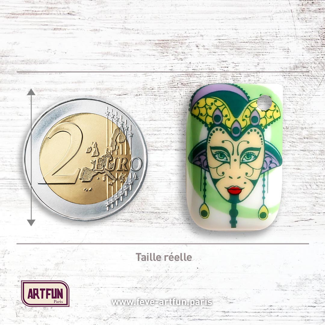 Fève percée en pendentif - Décor posé à la main. La Fève-Bijou, une fève cadeau à porter toute l’année !
