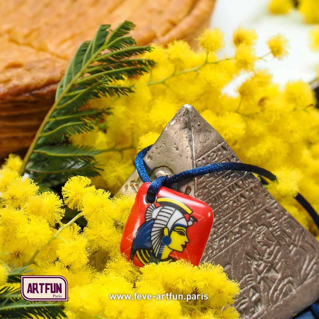 Fève percée en pendentif - Décor posé à la main. La Fève-Bijou, une fève cadeau à porter toute l’année !